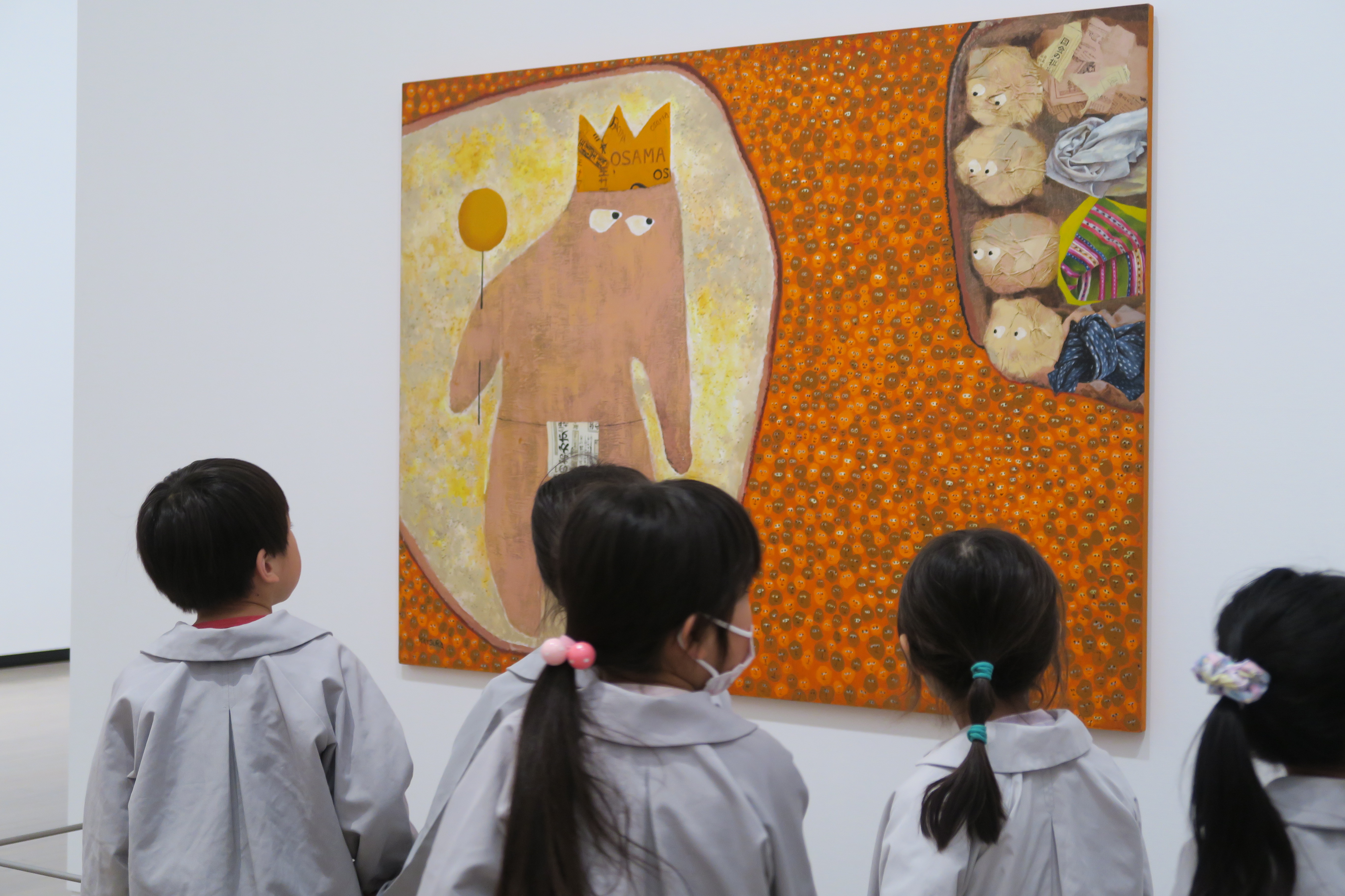 コレクション展示室を中心に、美術館のさまざまな場所をめぐり、作品だけではなく美術館の空間全体を体験します。学齢にあわせて1点~3点の作品を鑑賞します。