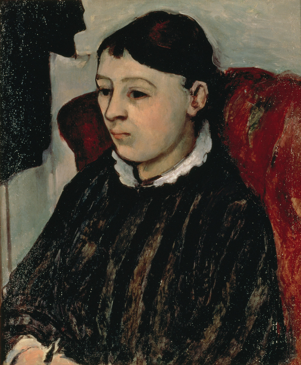 Paul Cézanne, "Mrs. Cézanne in Striped Dress," 1883-85, oil on canvas, 56.8×47.0 cm