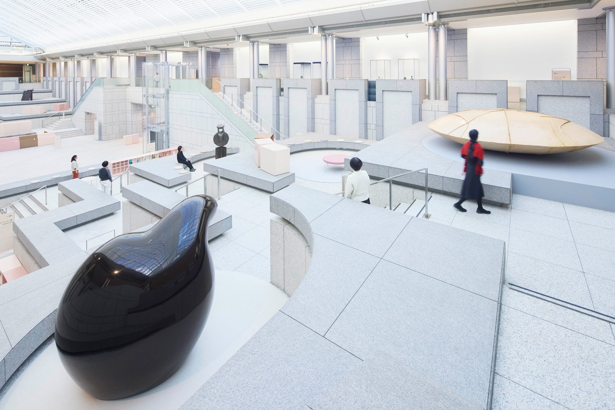 Throughout the Yokohama Museum of Art, you can spot circle and square motifs in all sorts of places. The great staircase in the Grand Gallery is one example.