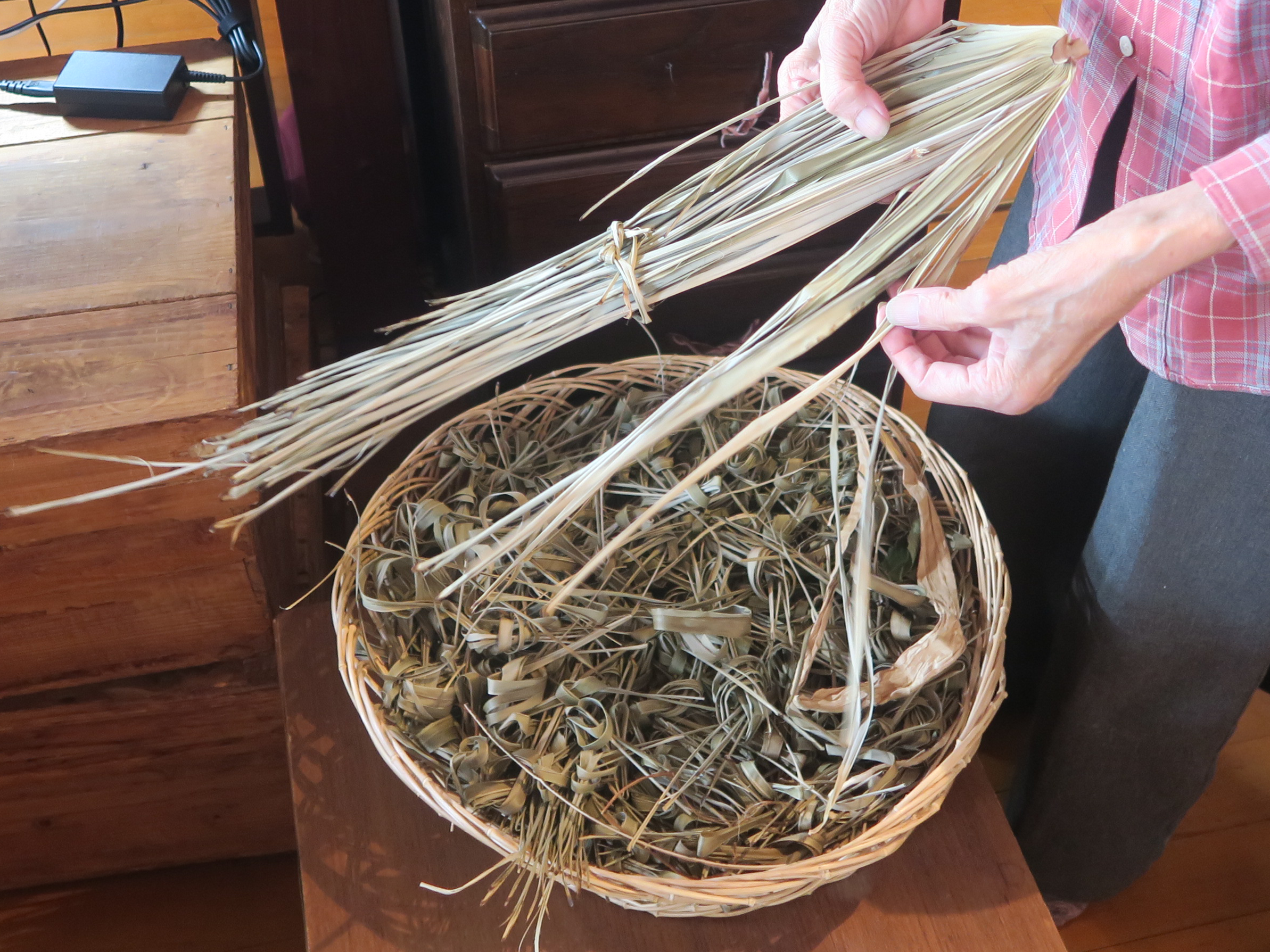 コレクション展「つくるわたしが、つくられる」の出品作家、関島寿子さんを講師としてお迎えして開催するプログラムです。「編む」という基本の動作を「結ぶ」「組む」など独自の6つの定式に分類し、樹木の皮や植物を素材に制作する関島さん。本プログラムでは、作家とともに実作品4点の鑑賞をします。次に制作に使用したご自身の庭の樹木や植物のお話、素材の特性、扱い方について学びます。実際に材料に触れながら結ぶ、組む、ねじる、巻くなどの動作体験をします。人は昔から、身近な植物や樹木を生活に使用してきました。現代作家の植物とのつきあい方、創作の魅力に触れるプログラムです。